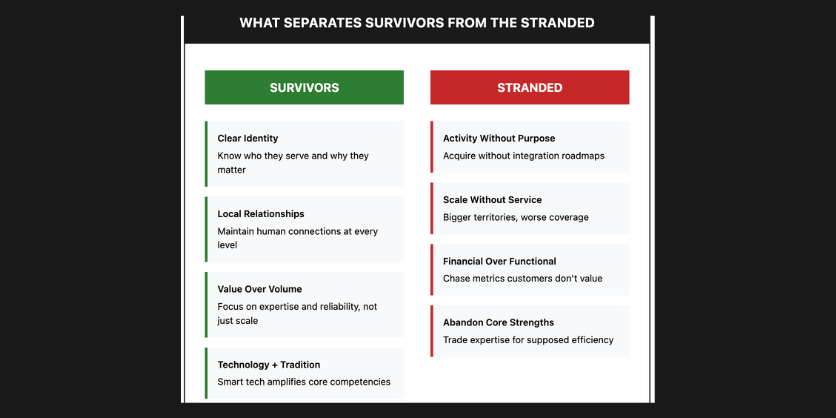 The distinction between tomorrow’s survivors and the stranded isn’t about size — it’s about identity, execution, and understanding what truly matters to customers.