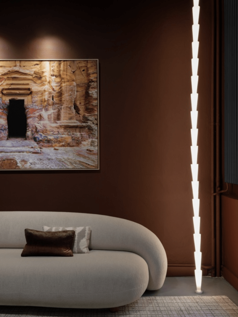 At the heart of the collection is the large Infinite Cascade chandelier: a poetic composition of alabaster cones suspended in succession, creating the illusion of an endless flow. Its movement and dynamism make it an ideal centerpiece, enlivening the architecture around it with warmth and radiance.