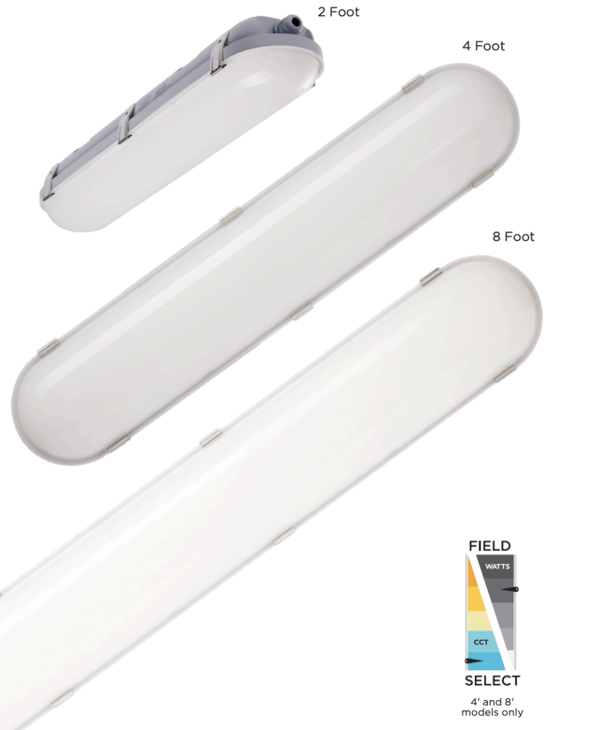 The SATCO|NUVO LED Vapor Proof Fixture Series delivers durability, versatility, and performance for demanding environments. All models feature 3 CCT selectable options, operate on a wide 120-347V range, and are built with rugged IP65 and IK08 construction. Select 4′ and 8′ fixtures also offer wattage selectability for maximum flexibility.